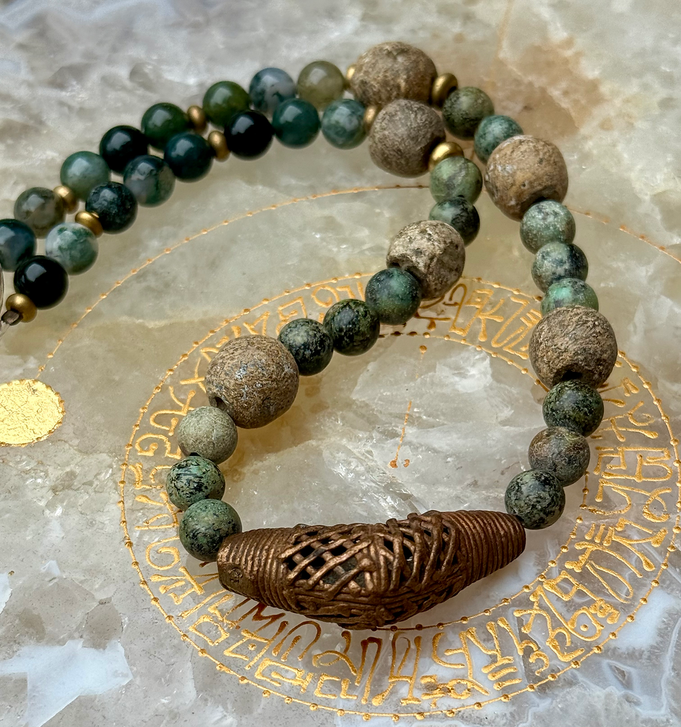Antieke Adinkra met Mammoet en Egyptische turqoise