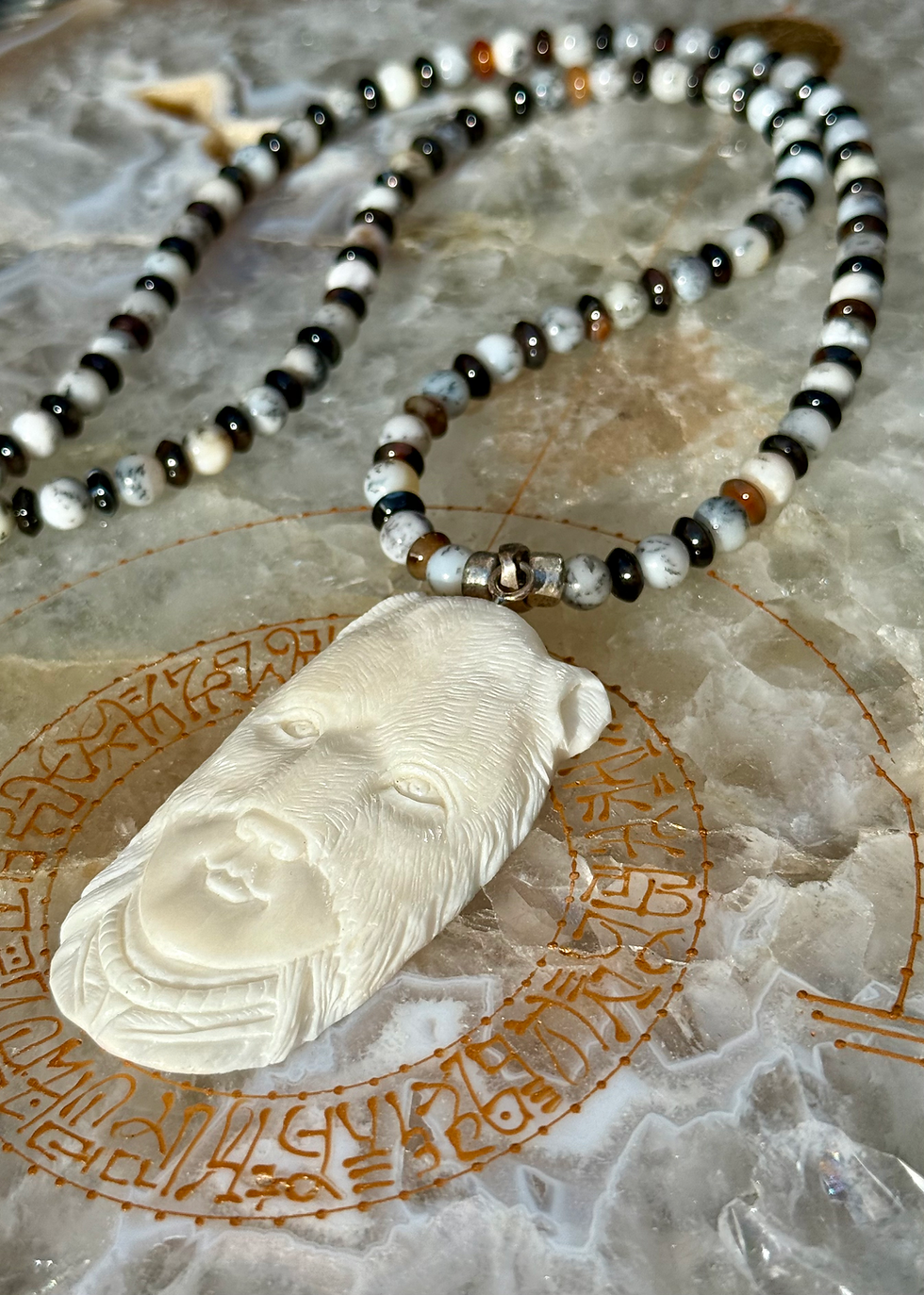 Bizonbot uitgesneden met Opaal en Tibetaans Agaat